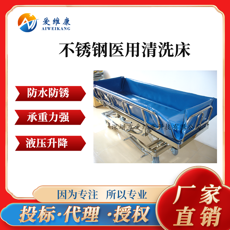 愛維康適合于全身沒有創(chuàng)口的行動不方便人士不銹鋼醫(yī)用清洗床